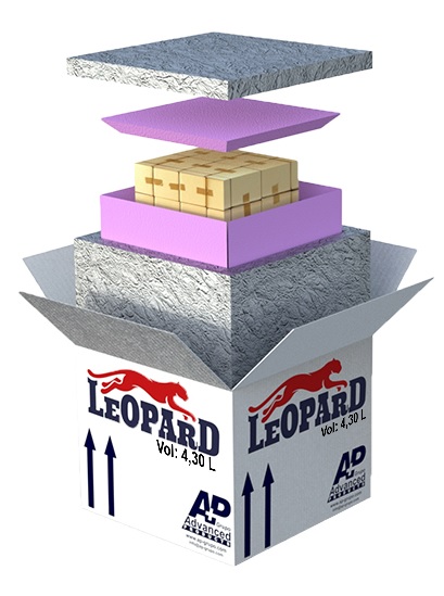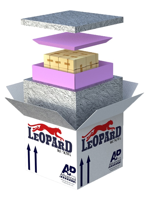 El embalaje reutilizable LEOPARD 5 con un volumen útil de 5 litros está calificado para mantener los productos farmacéuticos: